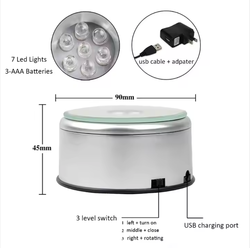 Dia. 8,5 cm runder Spiegel Silber Kunststoff rotierende LED-Lichtst änder Basis Weiß und optionale helle Farb basis für die Anzeige von Kristallen