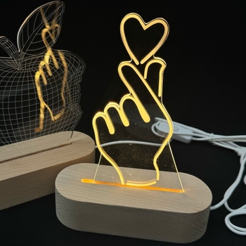 Venta al por mayor de madera maciza LED Base de luz a través de ranura Rectangular 3D acrílico USB lámpara de mesa Pantalla de Cristal madera Troffer Luz