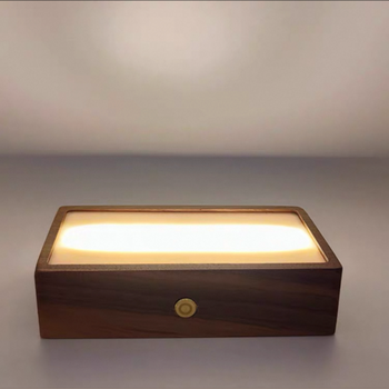 Luz LED de noche cálida con luz USB Troffer personalizable de alta calidad con base de madera rectangular y placa acrílica en blanco