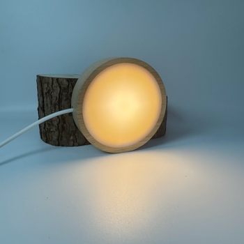 트로퍼 라이트 쉐이드가있는 8cm 원형 나무 LED 야간 조명베이스 멀티 컬러 3D 빛나는 크리스탈 볼 램프