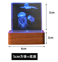 3D 크리스탈 레이저 유리 수지 아트 따뜻한 빛 LED 디스플레이 스탠드 우드 베이스 야간 조명