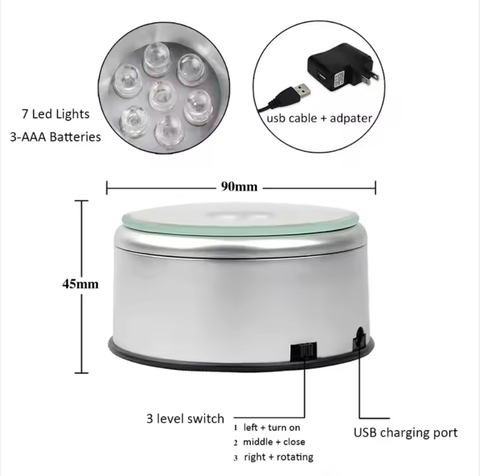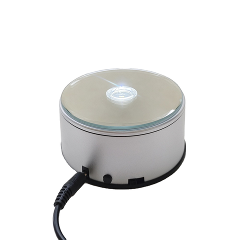 Dia. Base de support de lumière LED rotative en plastique argenté miroir rond de 8.5cm Base de couleur claire blanche et en option pour l'affichage des cristaux